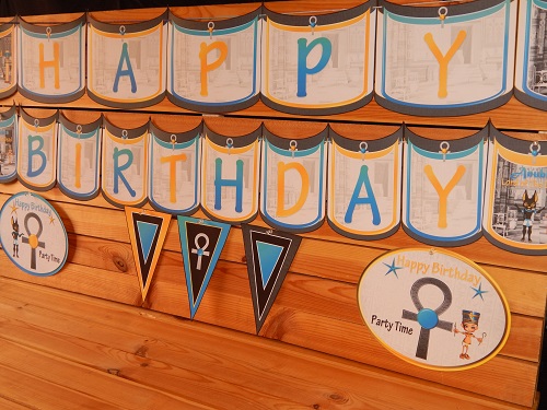 This Anubis printable party supplies theme is filled with Egyptian flare. This cool theme is blasted with bright & cheerful colors of blue, golden yellows, grey, & black. There are awesome images of the ankh known as the key of life, Anubis, Egyptian servant, Egyptian columns, stars, & black brick pyramids. Printables can be printed out year after year for multiple parties. All digital purchases are given to you instantly to download after payments are made. Orders are also sent to your valid email address with information about printables & policies. |