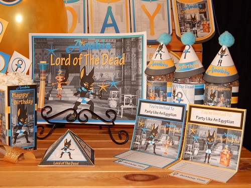 Anubis Egyptian printable party supplies for birthday parties. Party like an Egyptian with Anubis the Lord of the dead of from Egypt.