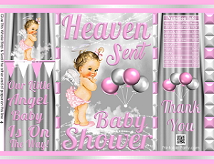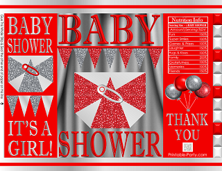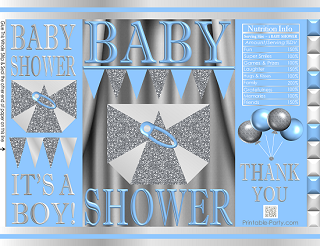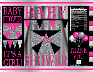 Printable baby shower chip bags can fit 1 oz bags of individually prepackaged foods