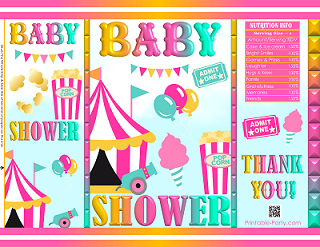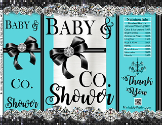 Printable baby shower gift bag labels can fit 1 oz bags of individually prepackaged foods