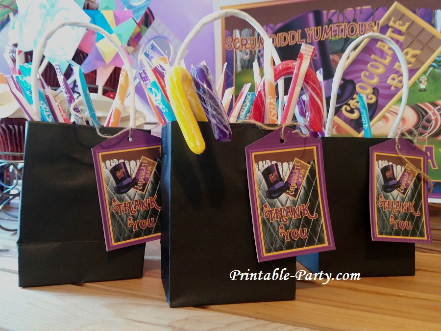 Chocolate Factory Treat Bags - Print onto 6.5x11 inch glossy flyer paper for best results. Fit 1 0z small chip bags, cookies, & more! Seal with glue stick or double sided tape.