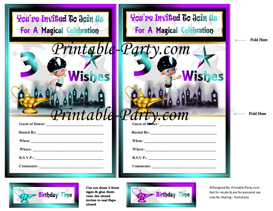 Printable 3 Wishes Genie party supplies are perfect for a magical celebration.