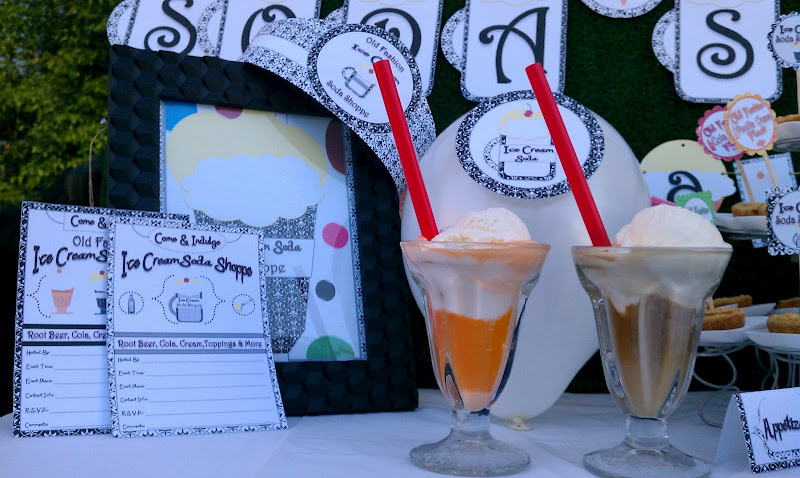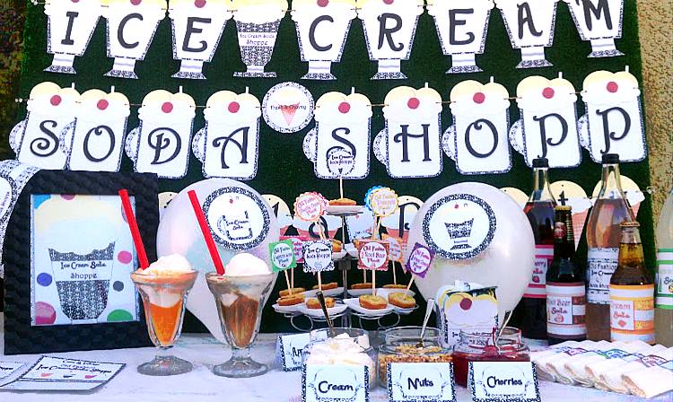 Free Vintage damask ice cream soda shoppe printable party supplies.