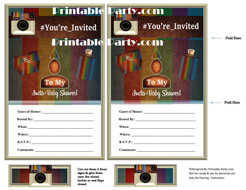 Insta-Baby Printable Invites - 4.5x7 Inch Trifold/Flat invitations 1 Designs. Can be folded to fit into 4x3 envelopes or kept flat to fit into 5x7 inch envelopes. Hand write your details.