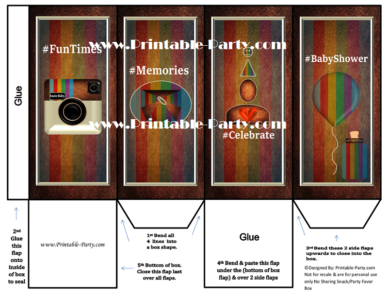 Insta-Baby Snack Box - Snack & favor box 1 Design. This open top box can be used as a themed snack box or a party favor box. Place in a cellophane bag & tie to use as a party favor.
