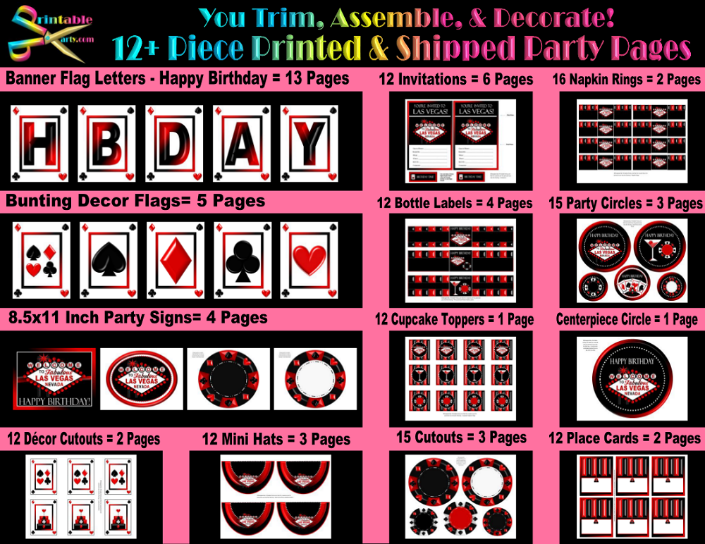 Printable Las Vegas party supplies that you can use to create a fab & stylish looking celebration. This printable fabulous Las Vegas birthday kit is hand designed