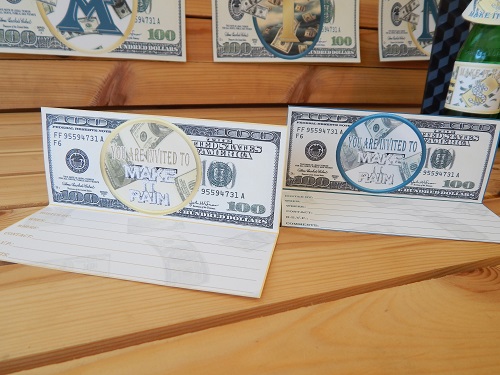 Make It Rain (Money) 6x3 Centerfold Invites Money themed party invitations come with two designs & two sign to be pasted onto the front of centerfold invites. Hand write your party details or add digital text. |